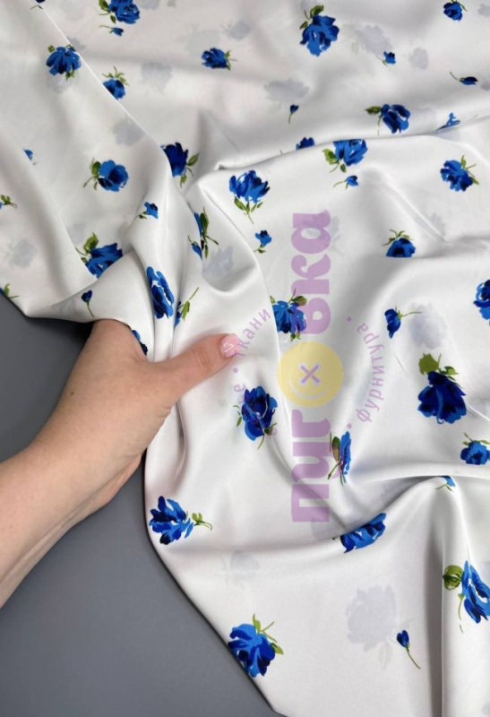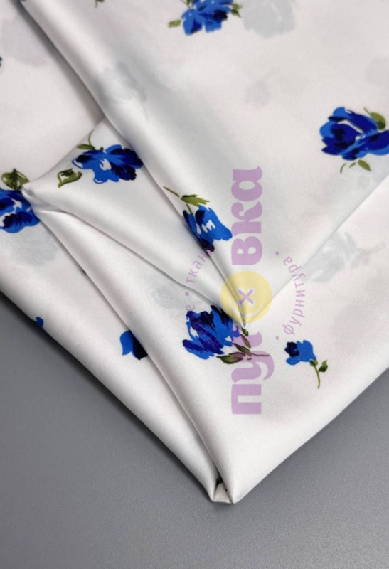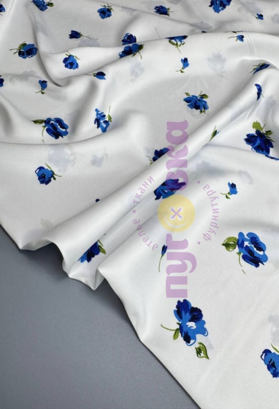 Армани-шелк синие цветы на белом