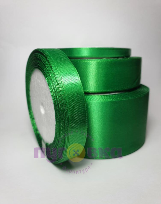Атласная лента моток 1,2см цвет зеленый №19
