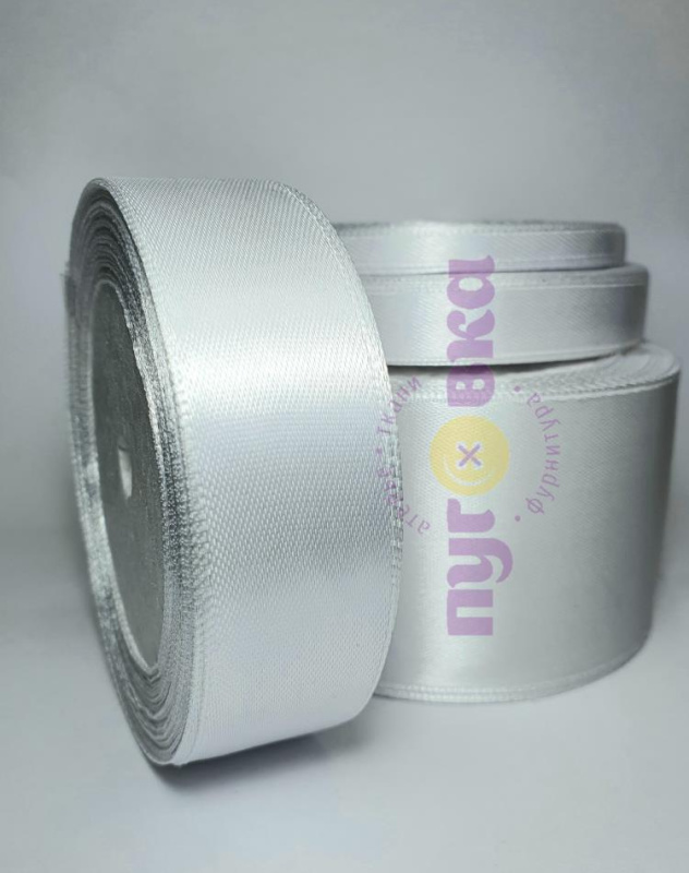 Атласная лента моток 2,5см цвет белый
