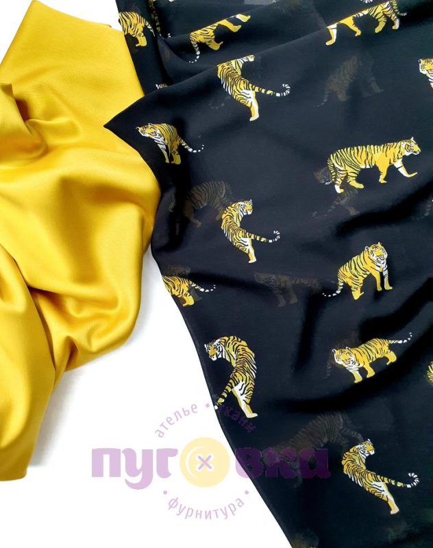 Креп шифон Тигр на черном АКЦИЯ