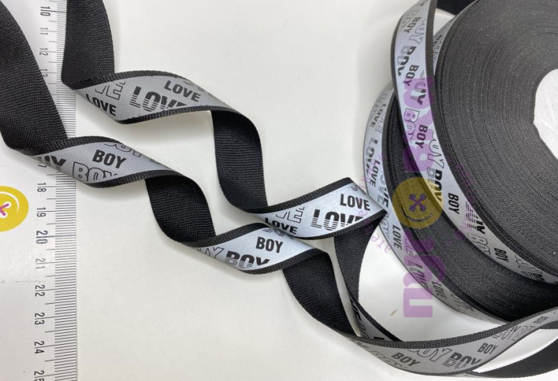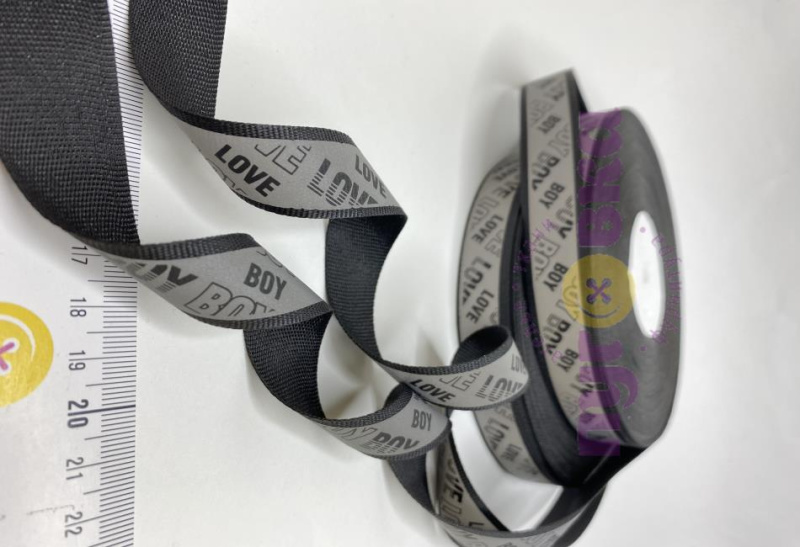 лента репсовая Sport/LOVE/Boy 2,5 см цвет черный/светоотраж;