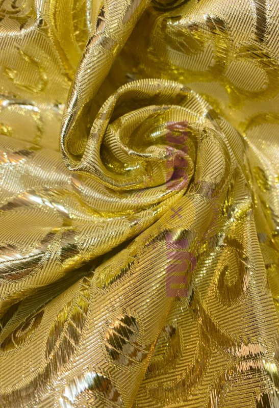 Парча жаккард.Ткань седней плотности. На лицевой стороне ткани имеются блестящие элементы. Отлично подходит для отделки и пошива концертных изделий.