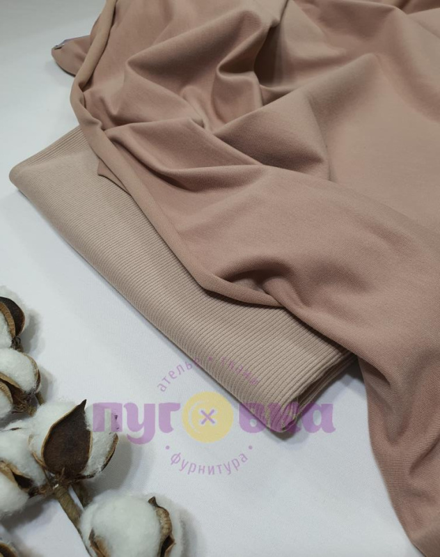 Трикотаж футер 2нитка с лайкрой цвет кофе с молоком ПЕНЬЕ