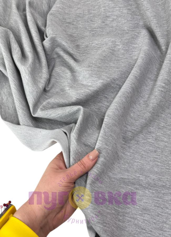 Трикотаж футер 2нитка с лайкрой цвет серый меланж с п/э Пенье