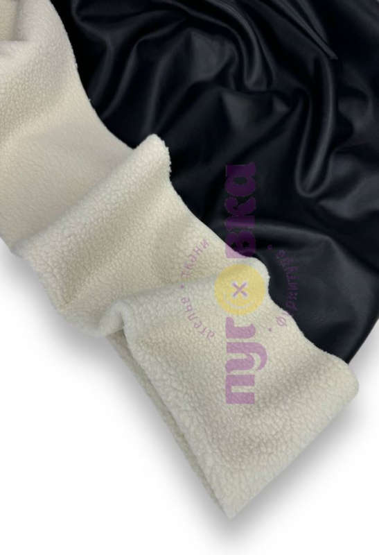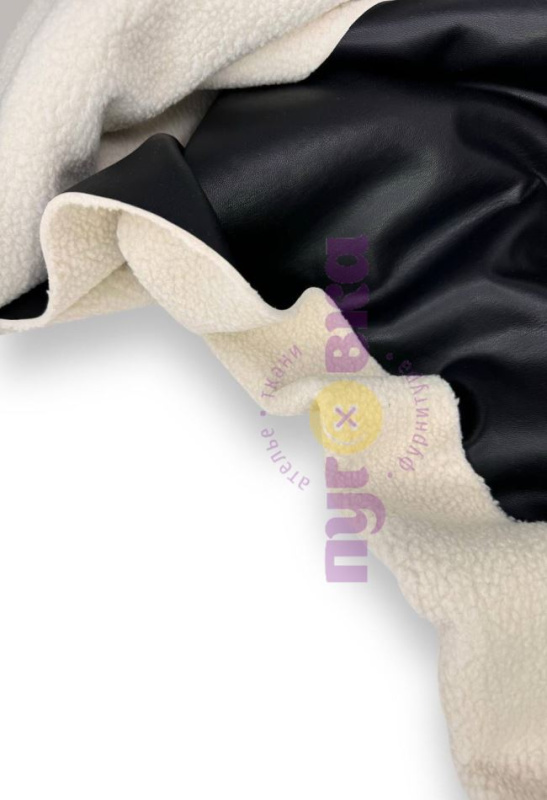 Дубленка мягкая/ Экокожа с мехом цвет черный/крем/запас на пластике