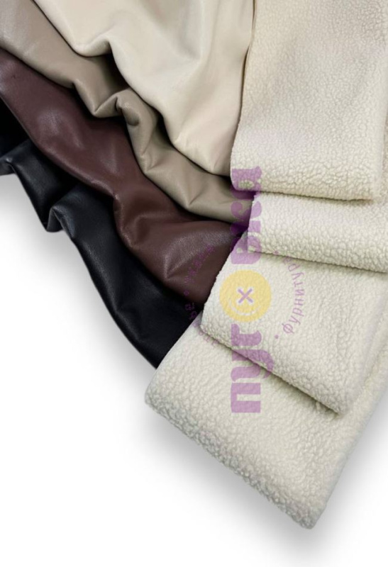Дубленка мягкая/ Экокожа с мехом цвет крем/запас на пластике