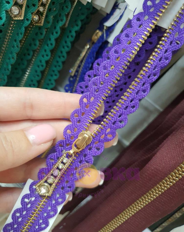 молния металл "Кружево"20 см,фиолет/золото н/р