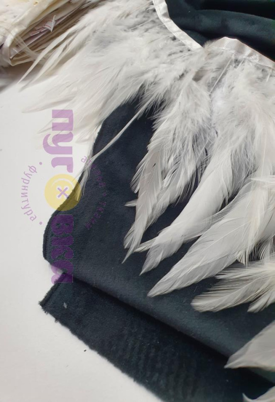 Тесьма перо Марабу на ленте цвет белый
